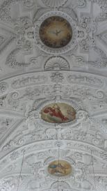 Deckenfresken: vorderer Teil "Gottvater in seiner Glorie", mittlerer Teil "Himmelfahrt Christi", hinterer Teil "Kampf des Erzengels Michael mit dem Drachen" Jesuitenkirche St. Salvator Stadt Augsburg |