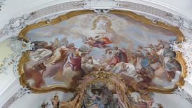 Deckenfresko "Maria als Gnadenvermittlerin und Fürbitterin der Christenheit" westlicher Querarm, Klosterkirche Ottobeuren, Ldkr. Unterallgäu |