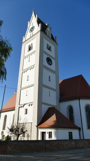 Die heutige Kirche ist ein Neubau aus der Zeit um 1460; der Turm wurde im Jahr 1474 errichtet.